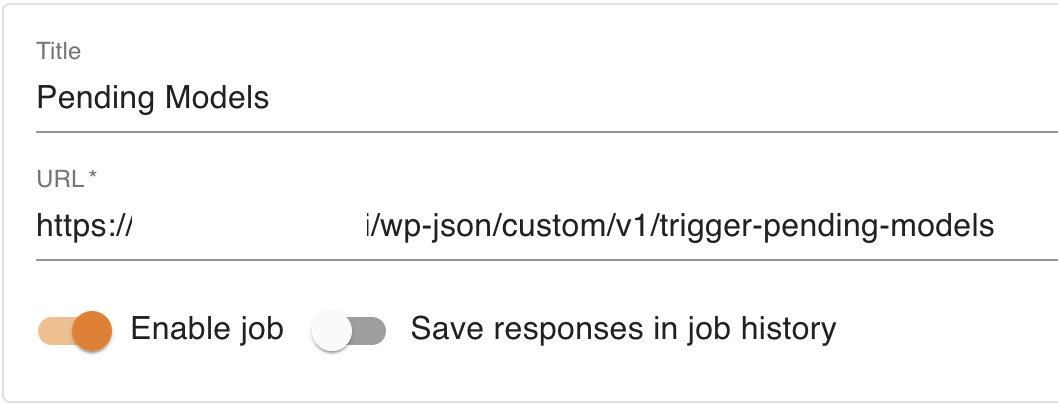 6.1.4 In the URL field, include the https://, your website, and wp-json/custom/v1/trigger-pending-models